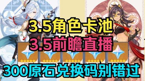 最近有没有听说,咱们心爱的游戏又要来点新鲜玩意儿啦?没错,就是那个让人心跳加速的3.5最新卡池爆料!今天,我就要带你一探究竟,看看这次卡池里都有哪些神秘的新面孔,以及它们背后的故事。准备好了吗?让我们一起来揭开这神秘的面纱吧!
